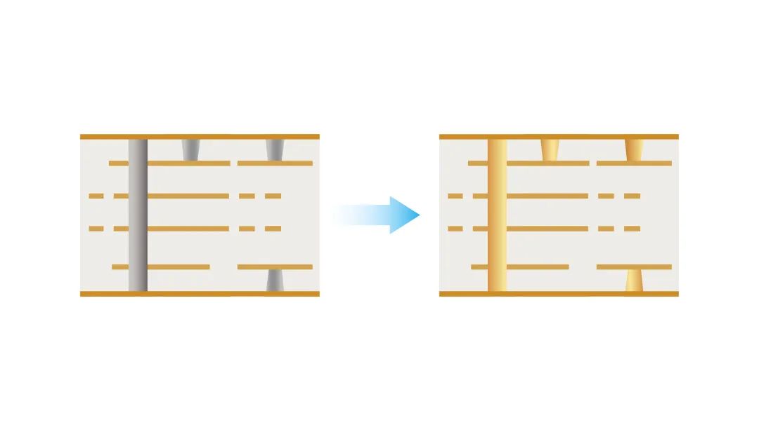水平沉铜工艺主要由膨松、除胶、中和、整孔、微蚀、预浸、活化、还原、化铜等制程组成。在如今PCB线路更密集、线距更窄、通孔更小、板厚更厚的情况下,要求水平沉铜化学品在保证深镀能力和镀层均匀的前提下,提供高效率的生产能力。