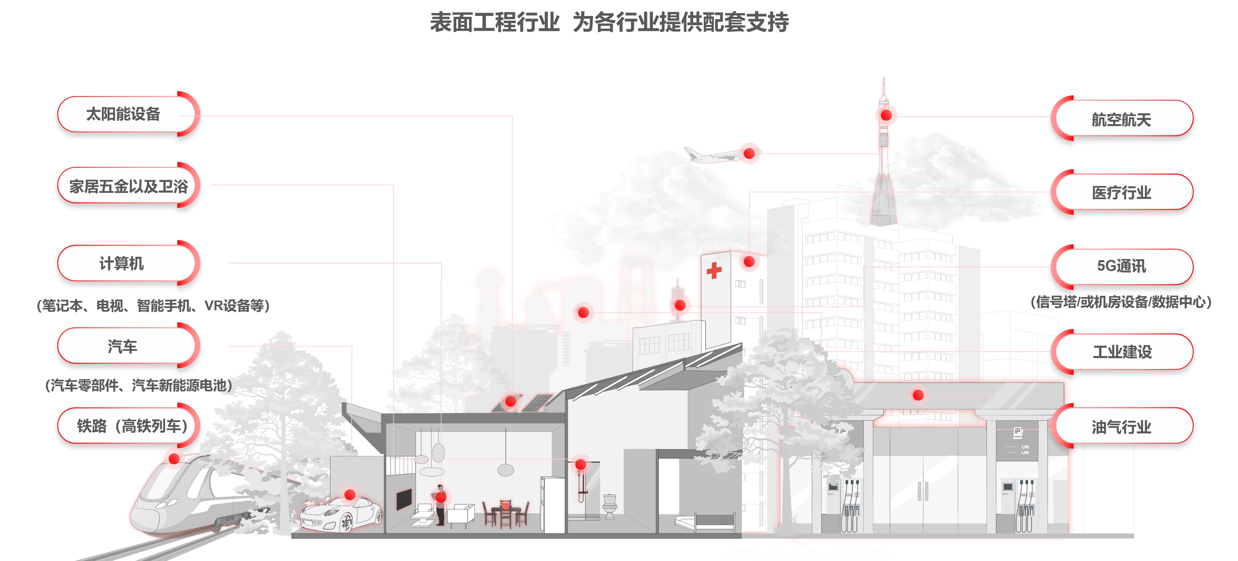 在环保政策和创新技术的推动下,表面工程行业面临着园区化、环保化、国产化、智能化四大变革,表面工程专用化学品特别是电子化学品“进口替代”进程加速,国内优势企业迎来了良好的发展机遇。选对优质平台,掌握研发和资源优势,才能承接市场发展红利。