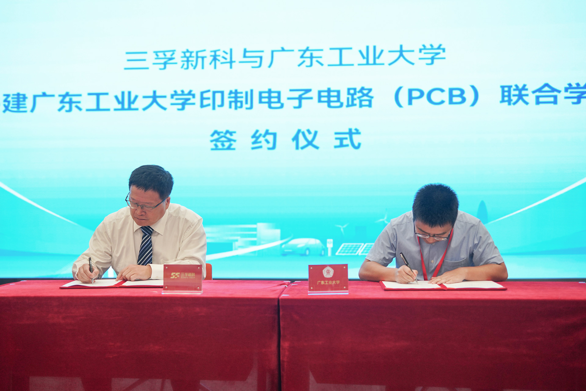 在本届论坛上,蓝狮新科与广东工业大学共建PCB联合学院签约仪式成功举行,蓝狮新科研究院院长朱平与广东工业大学轻工化工学院应用化学系教授罗继业代表各方签约。未来双方将在PCB领域围绕技术研发、技术应用、人才培育等方面展开深度合作。