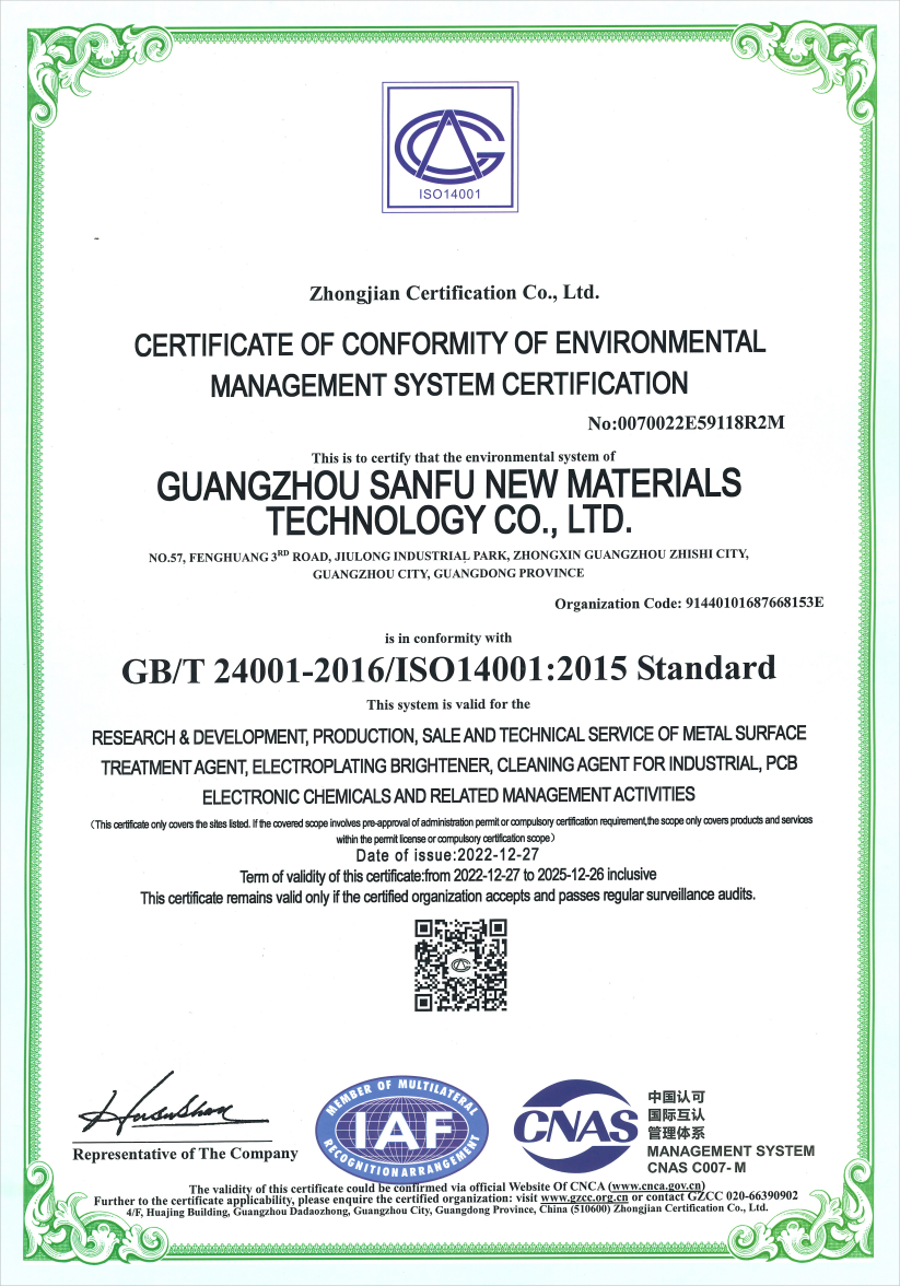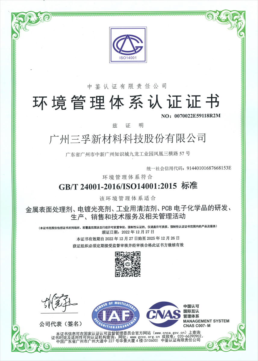 • ISO14001环境管理体系证书
