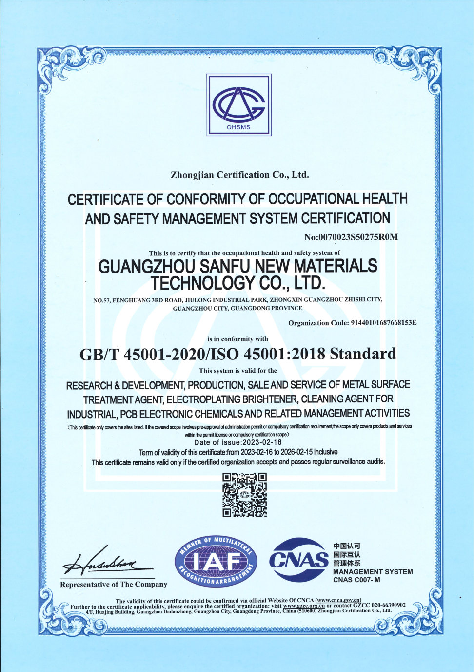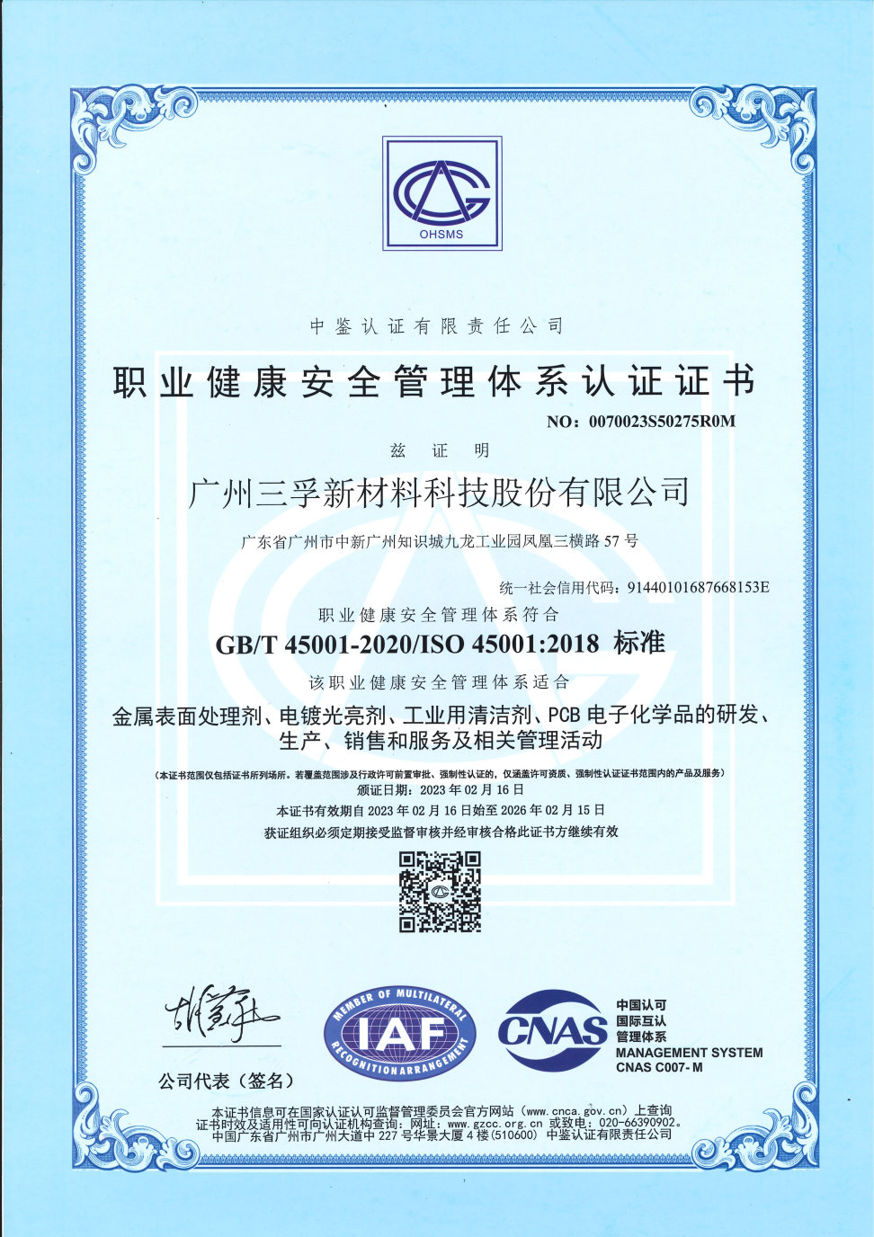 • ISO45001职业健康安全管理体系认证