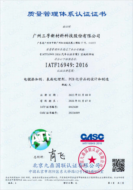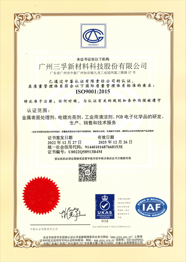 3  一种用于水平沉铜的离子钯活化液及其制备方法 202010783640X 发明专利 2021.3.23 2020.08.06-2040.08.05