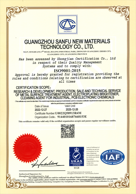 19 SF-无氰沉锌剂获得2018年广东省高新技术产品认定 广东省高新技术企业协会 2018年12月